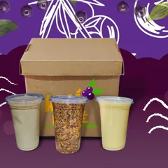 Experimente nosso Super Combo Econômico, 1 Caixa de 5 Litros de Açai Premium, acompanhada por 1 Copo de 500ml de Leite Condensado, 1 Copo de 500ml de Granola crocante e 1 Copo de 500ml de Leite em Pó.